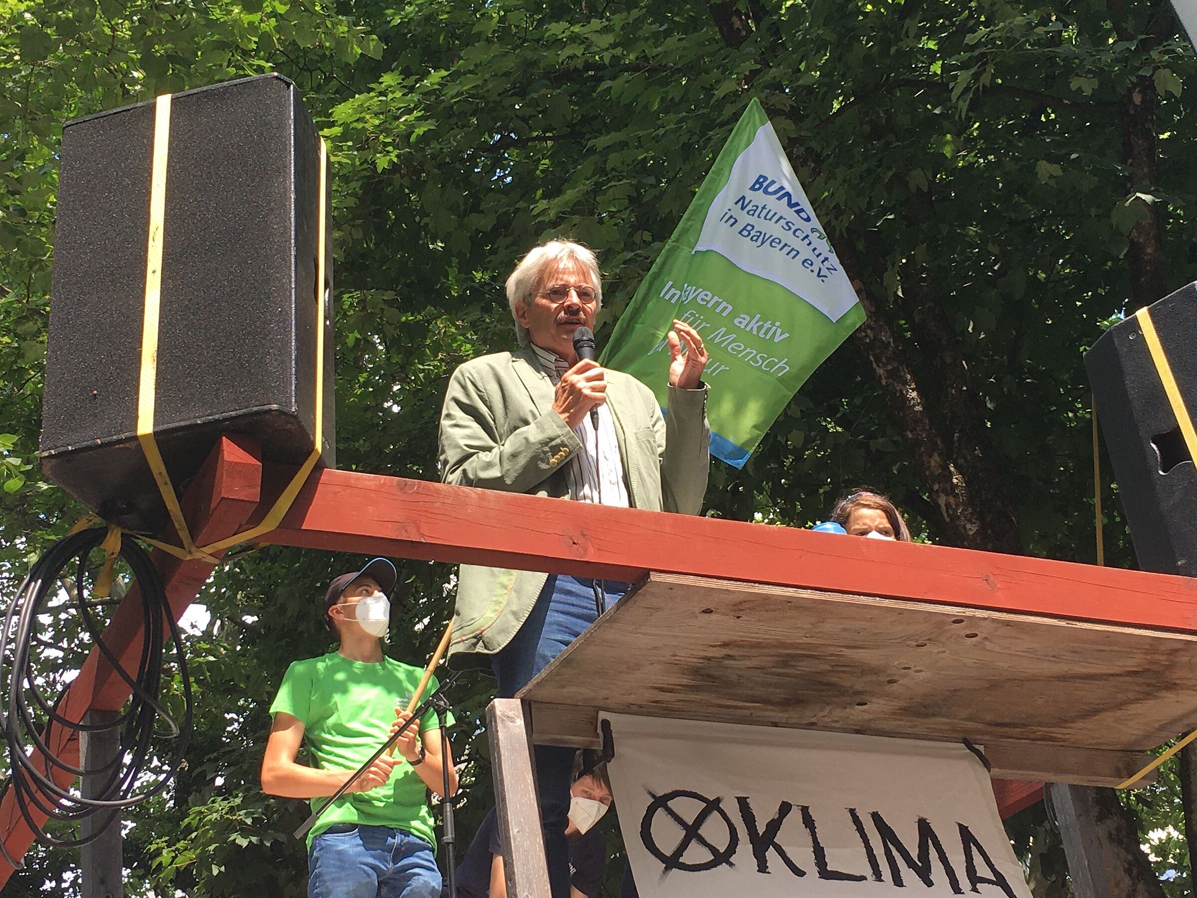 Zu wenig, zu vage, zu unverbindlich: Die bayerische Staatsregierung betreibt eine mangelhafte Klimaschutzpolitik. Darin waren sich die zahlreichen Teilnehmer der großen Klimademo in München an diesem Freitag einig. BN-Vorsitzender Richard Mergner war einer der Redner auf der Auftaktkundgebung vor der Staatskanzlei.