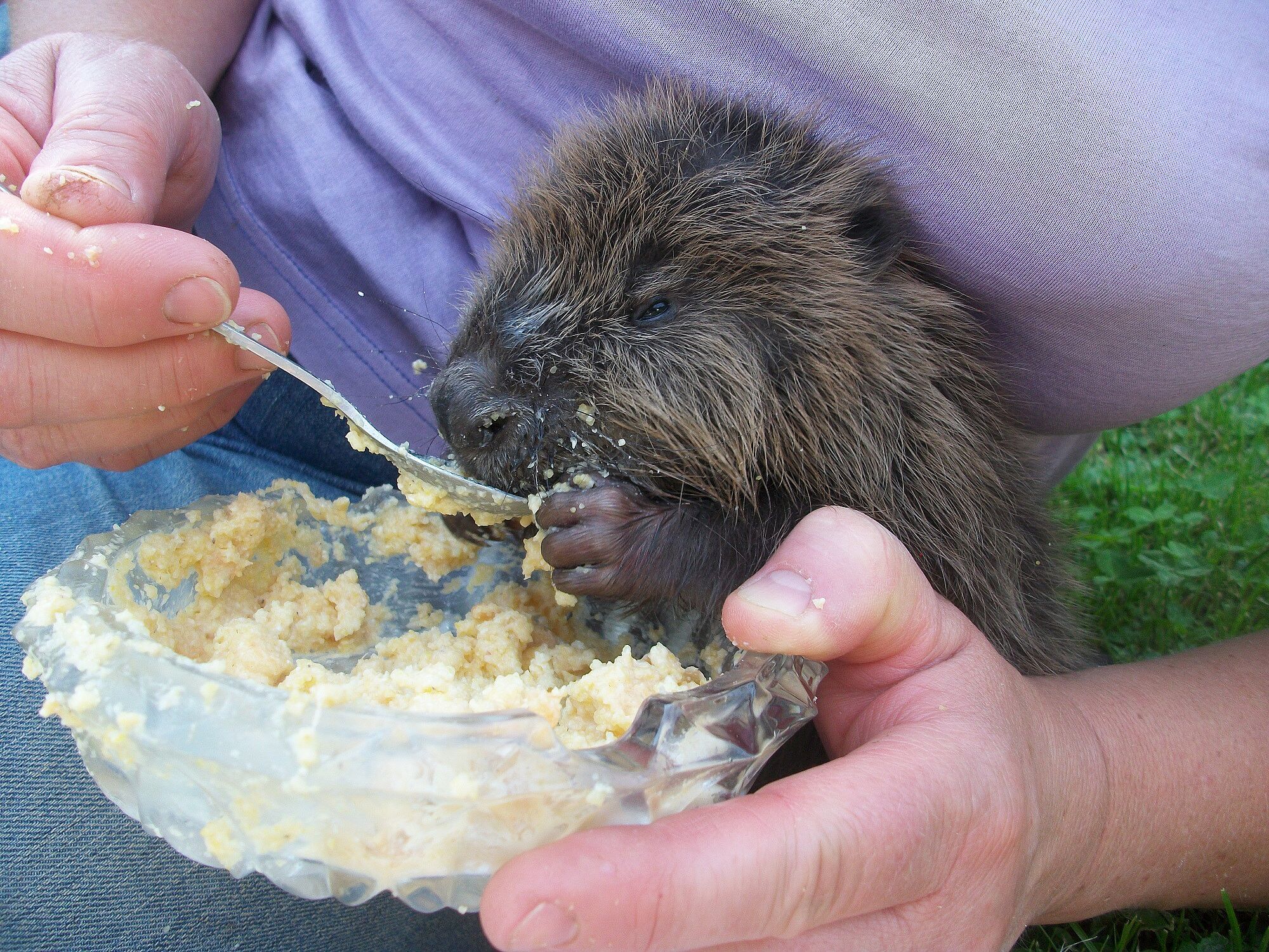 Nach einem Hochwasser 2013 am Inn wurde ein Biberjunges unterkühlt aufgefunden, das wohl aus dem Bau gespült worden war. Marianne Watzenberger hat sich des kleinen Tieres angenommen und es mühsam mit Fläschchen großgezogen. Sobald es möglich war, musste er ausserhalb des Hauses bleiben, um sich an seine neue Zukunft zu gewöhnen. Sobald er sich selbst versorgen konnte, wurde er dann ausgewildert.