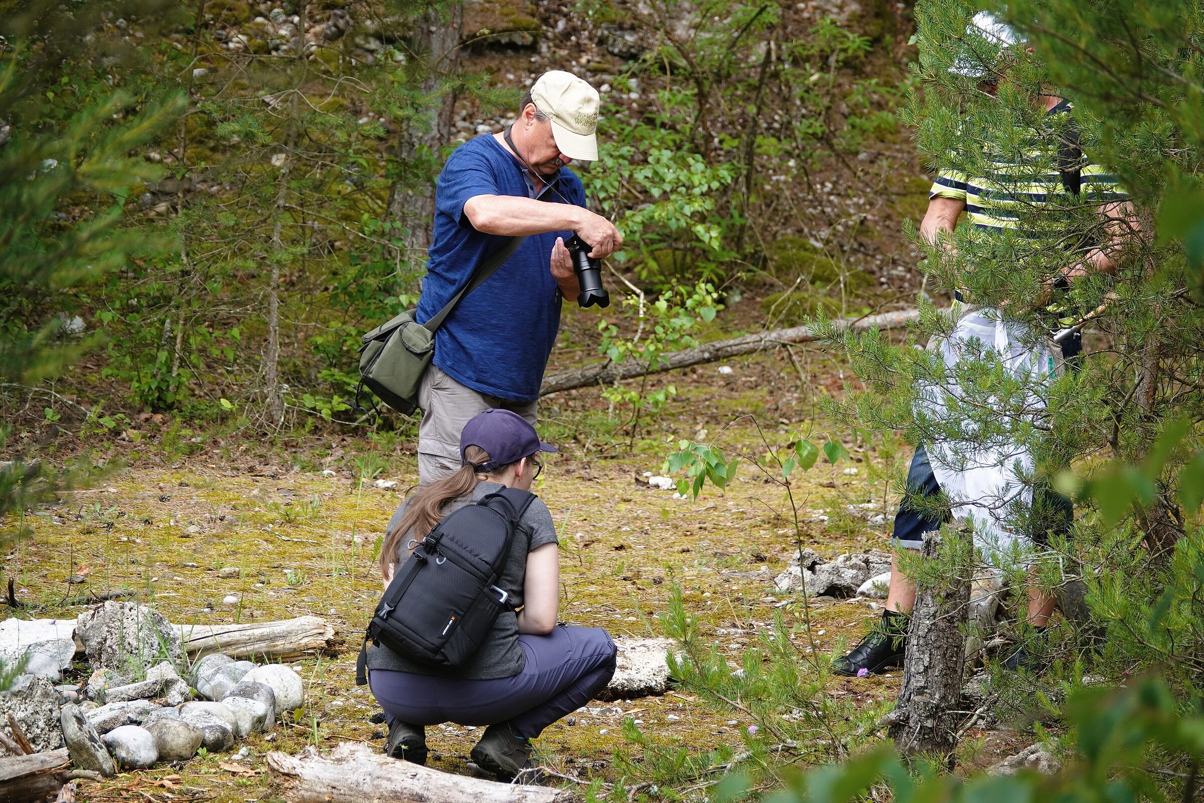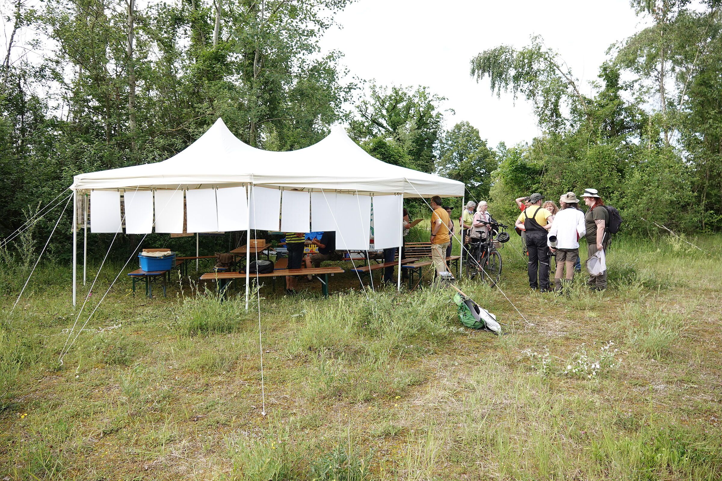 Normalerweise ist der Juni für die PilzexpertInnen immer recht enttäuschend, aber diesmal war die Gruppe um Till R. Lohmeyer und Thomas Glaser sehr zufrieden, wobei die Nachbestimmung vor allem der Mikropilze, das Spezialgebiet von Inge Rössl, noch nicht abgeschlossen ist und somit die genaue Zahl noch nicht feststeht. Sogar Speisepilze, wie der Perlpilz und Parasol wurden entdeckt. Und auf der Magerrasenfläche wurden 5 Saftlingsarten gefunden, darunter der eher seltene Kalkliebende Filz-Saftling (Hygrocybe calciphila).