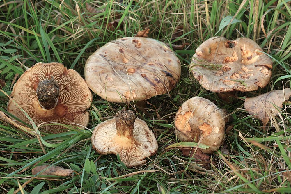 Aus der Gattung Amanita wurden 6 Vertreter notiert. Darunter der schwach giftige Gelbe Knollenblätterpilz (Amanita citrina), einige Fliegenpilze (Amanita muscaria), aber auch der essbare Perlpilz (Amanita rubescens). Anhand dieser Arten konnten die ExpertInnen anschaulich die wichtigen Unterscheidungsmerkmale erläutern. Auch vor dem giftigen Rotschuppigen Raukopf (Cortinarius bolaris) und ähnlichen Arten wurde ausdrücklich gewarnt. Ihr Rat für Pilzneulinge lautete, zuerst die tödlich giftigen Pilze erkennen zu lernen. Von Bestimmungs-Apps raten sie ab, es sei denn, man überprüft jede Bestimmung nochmal mit einem guten Pilzbuch. Dabei muss jedes dort beschriebene Merkmal am Pilz geprüft werden.