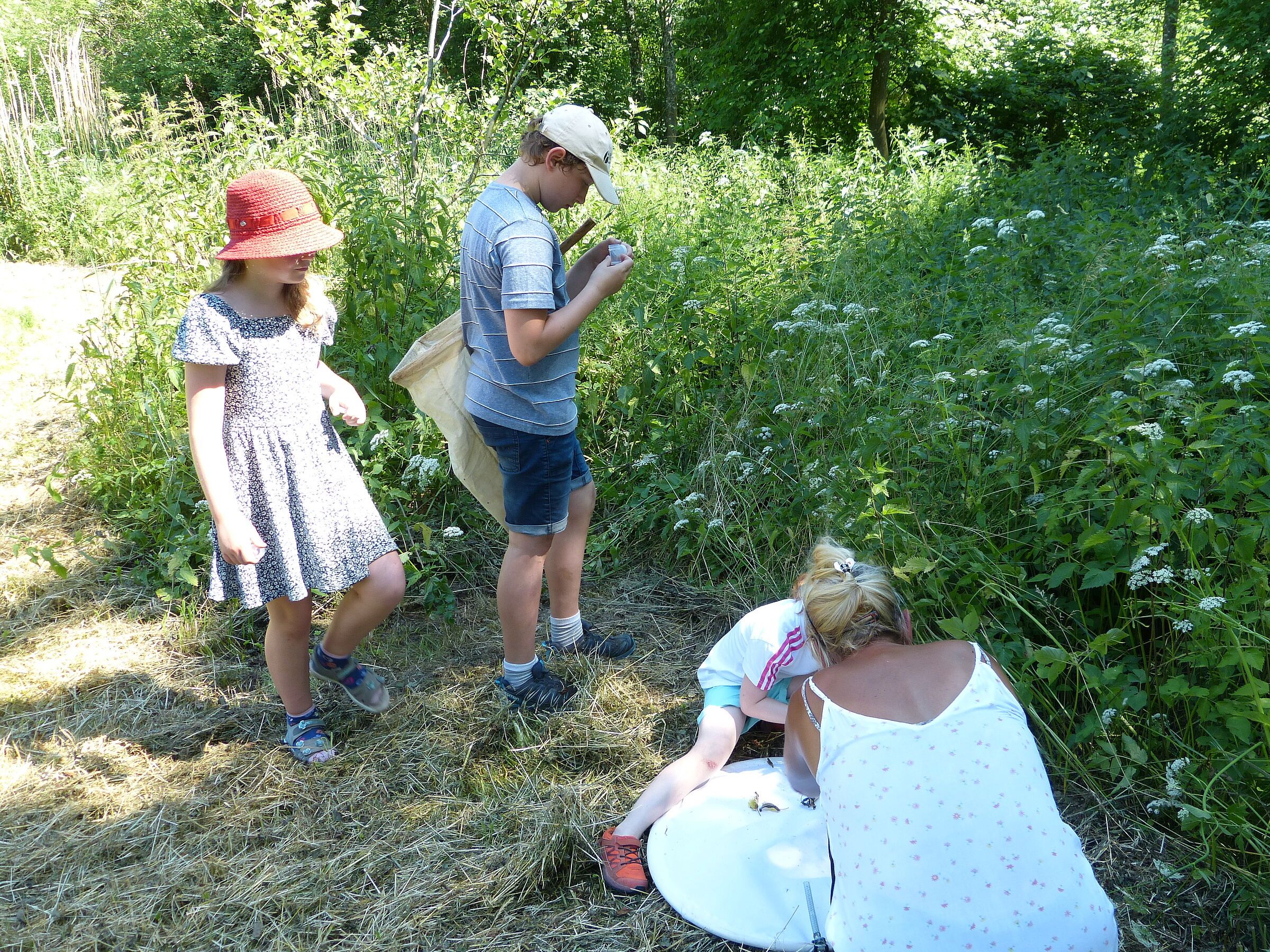 Prof. Michael Hohla, Stephan Stadler, Eveline Merches und Walter Sage hatten das Gebiet in einer Vorexkursion auf Pflanzen, Käfer, Spinnen, Falter und sonstigen Tieren untersucht. Am diesjährigen GEO-Tag haben sich zur Freude der BN-Aktiven drei "Experten-Neulinge" an den Pflanzen (Astrid Maier), den Wassertierchen (Conny Hahn-Hickel) und Vögeln, Faltern, Käfern u.ä. (Markus Brindl) versucht.