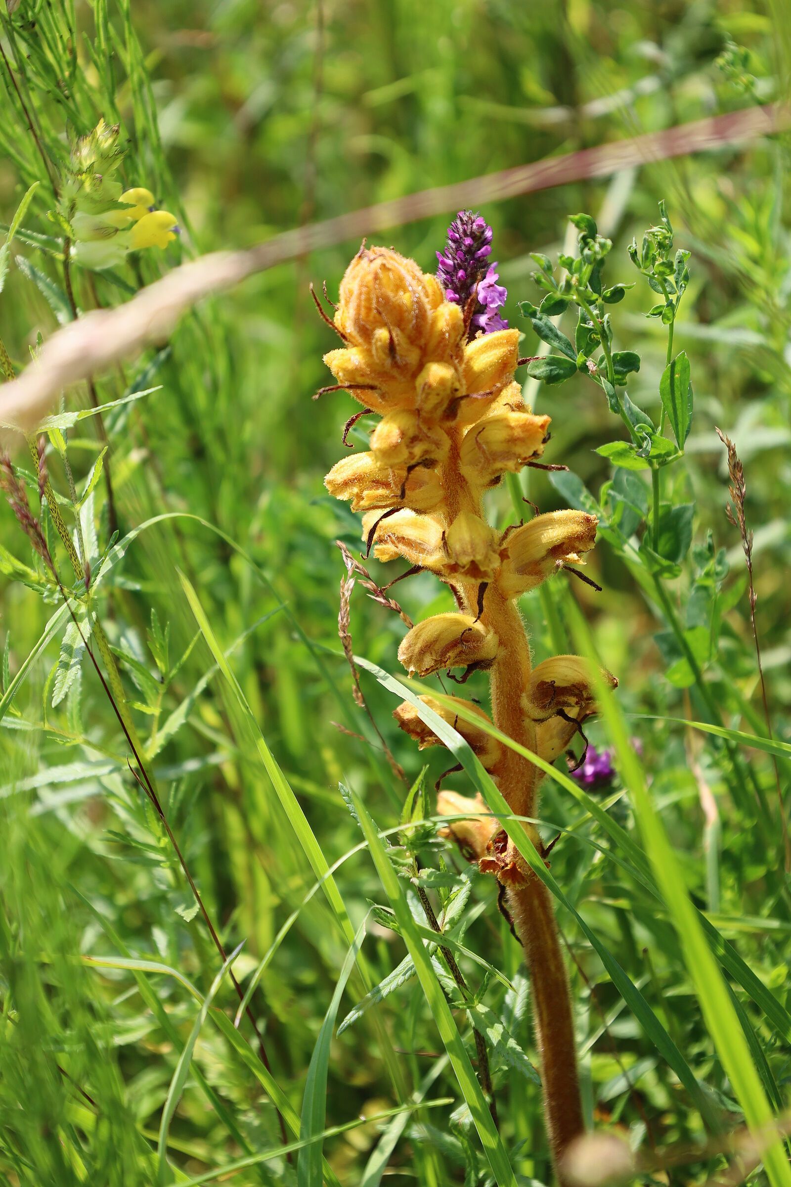 Knapp 300 verschiedene Baum- und Straucharten, Moose, Blühpflanzen und Gräser landeten in der Artenliste. Es waren zwar nicht viele Rote-Liste-Arten dabei, aber doch eine schöne Vielfalt. Der Westerndorfer Graben, der geprägt ist von Trockenstandorten und abwechslungsreicher Gestaltung (Steine, Totholz, Hänge und Böschungen) verzeichnete die meisten Arten. Unter den Funden in den Gebieten fanden sich auch ein paar seltenere Arten wie die Schwarzpappel (Populus nigra, RL 2), die Lavendel-Weide (Salix elaeagnos, RL V), das wunderschön blühende Tausendgüldenkraut (RLV-BArtSchV) und das Helmknabenkraut (Orchis militaris, RL 3). Aber auch der Große Klappertopf (Rhinanthus serotinus, RL 3) und das im Wasser des Westerndorfer Grabens wachsende Quirl-Tausendblatt (Myriophyllum verticillatum, RL 3).